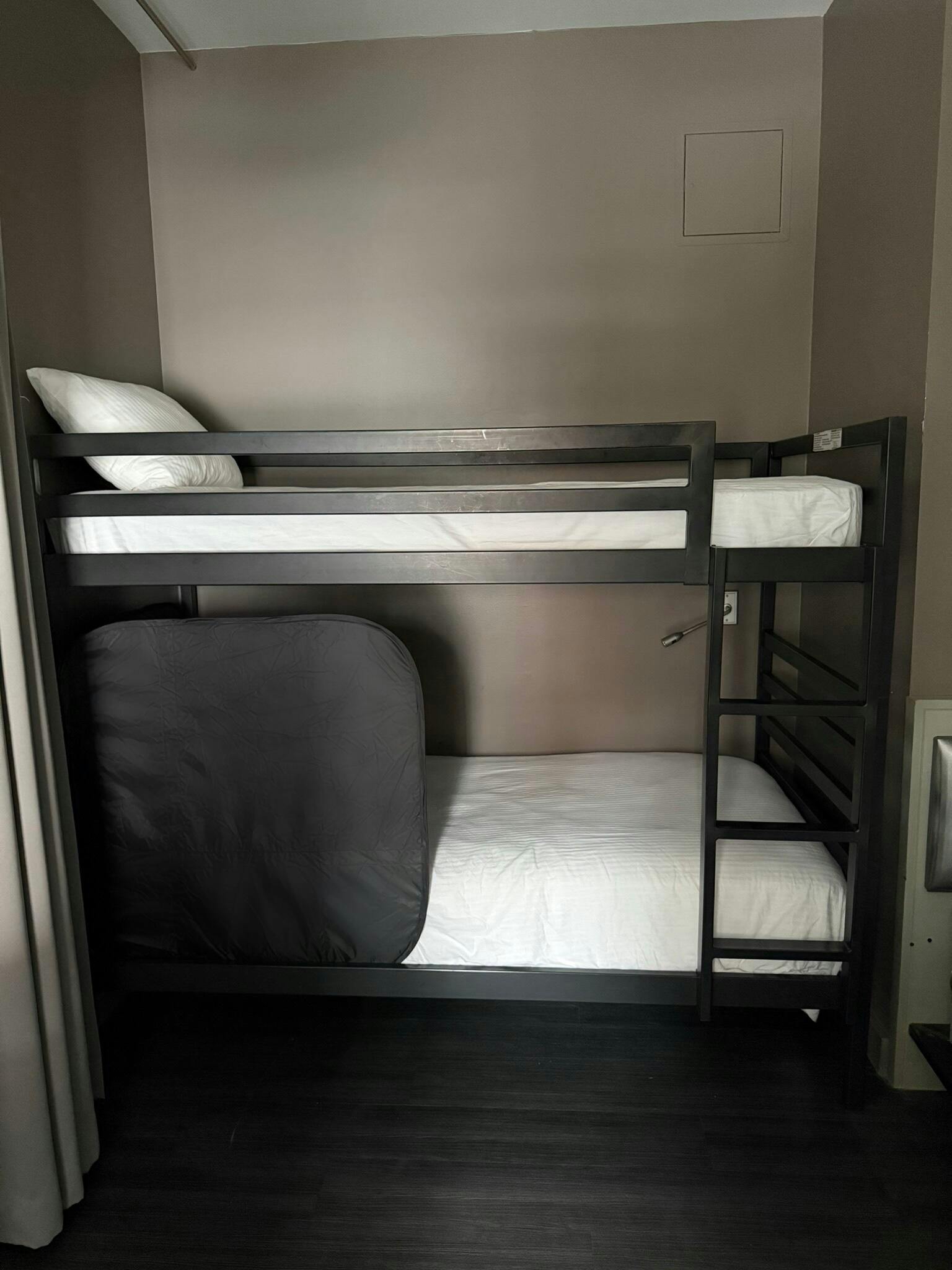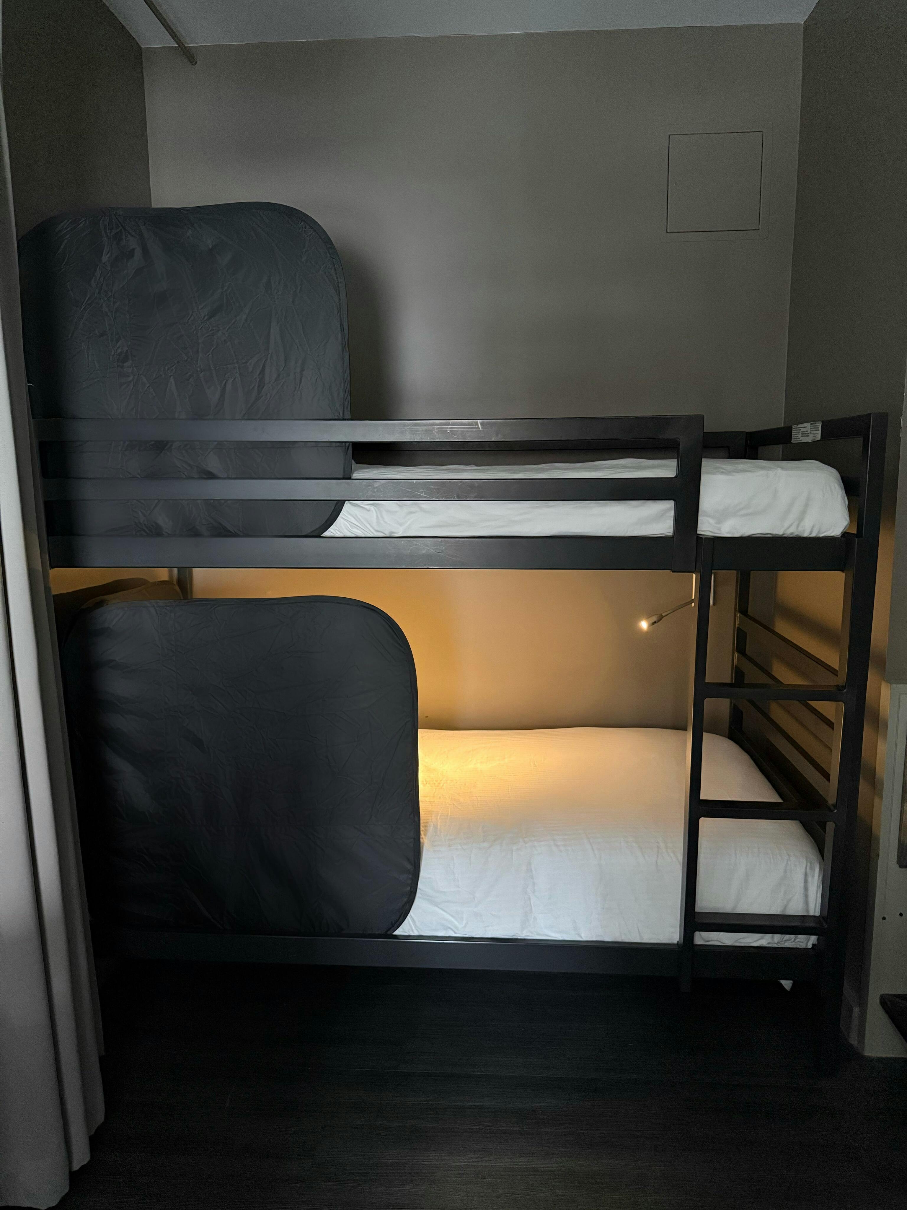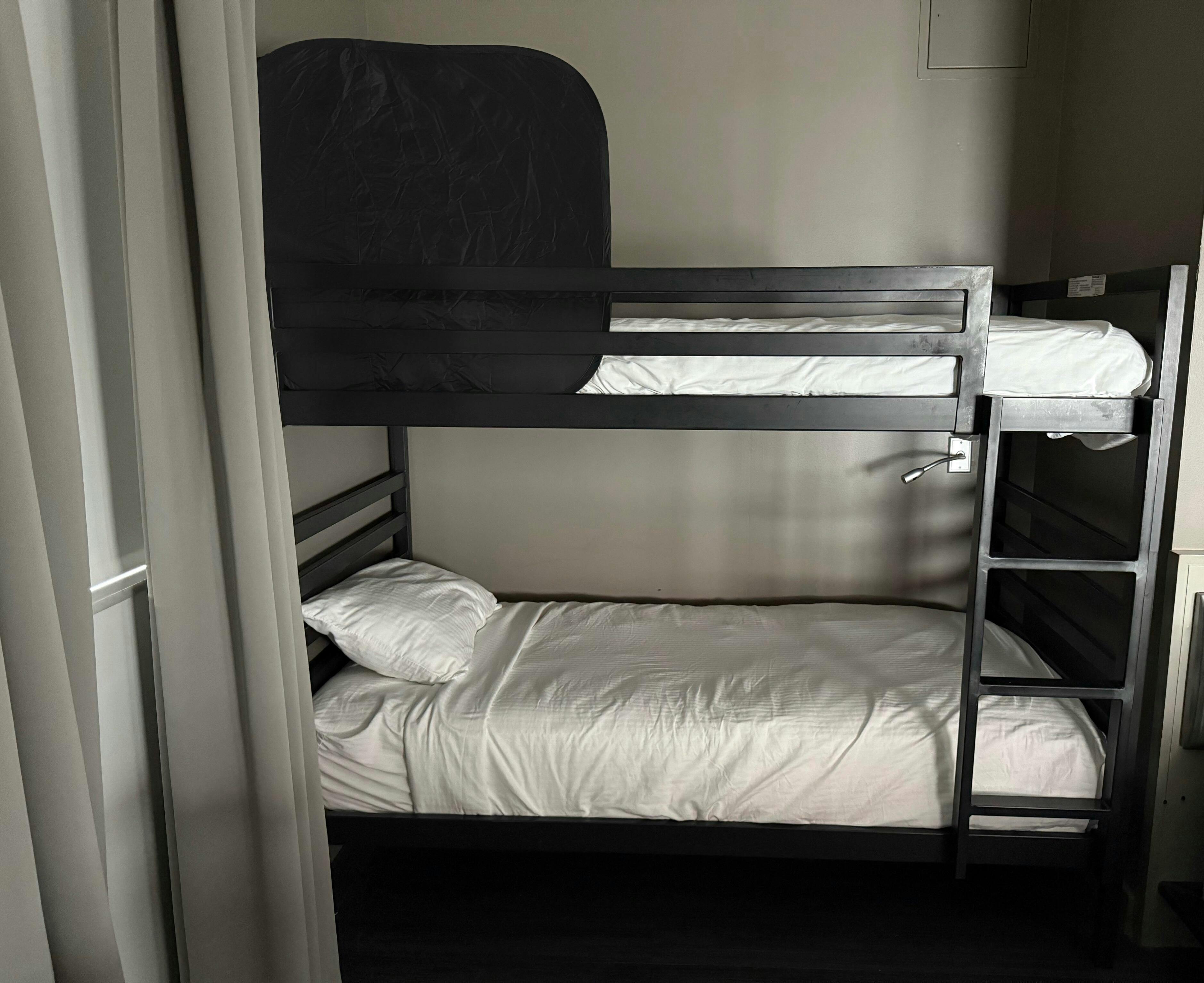 This was perfect. You can move it to any of the 3 beds and it gives just enough privacy without making the room feel smaller. We got the smaller size (the Basic size) and it fits the bunk bed perfectly even though we have enough room for the bigger size. You can’t even see the pillow behind it in the photo. Set up and take down were super easy too.